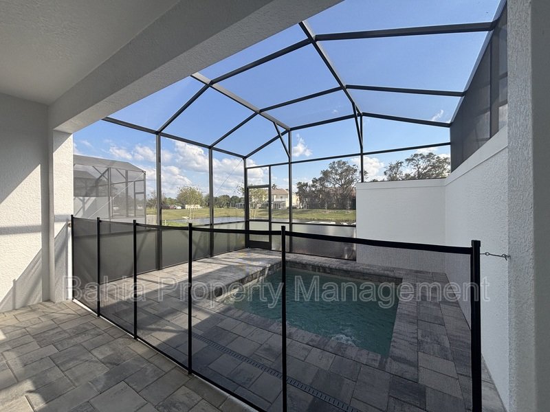 BEAUTIFUL BRAND NEW MOVE IN READY HOME! Be the first resident to live in this modern 4 BED /3 BATH townhome in the Tranquility Townhouse Neighborhood in Clermont. This property features wood-style Porcelain tile flooring thought out the first floor and bathrooms, fully carpeted on second floor, a private heated pool, complete with therapeutic jets and aluminum screened-in lanai. Built with the latest in eco friendly construction technologies. The kitchen has quartz countertops with modern cabinets and Samsung appliances. All bathrooms feature LED-lit mirrors, upgraded faucets with matching hardware, and glass shower enclosures in the master shower and first floor bathroom. This community is close to world class theme parks, attractions, golf courses, shopping, and restaurants. Less than 8 miles to Walt Disney Worlds Western Entrance. The clubhouse includes a fitness center and a game room in which you and your guests may enjoy and is included with your HOA fees. This unit has complete privacy overlooking a pond. Water and sewer included in the rent. WE SHOW PROPERTIES 7 DAYS A WEEK! An administrative fee of $75.00 will be charged at the time of move-in.