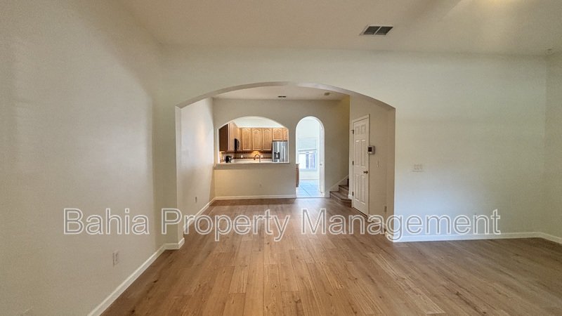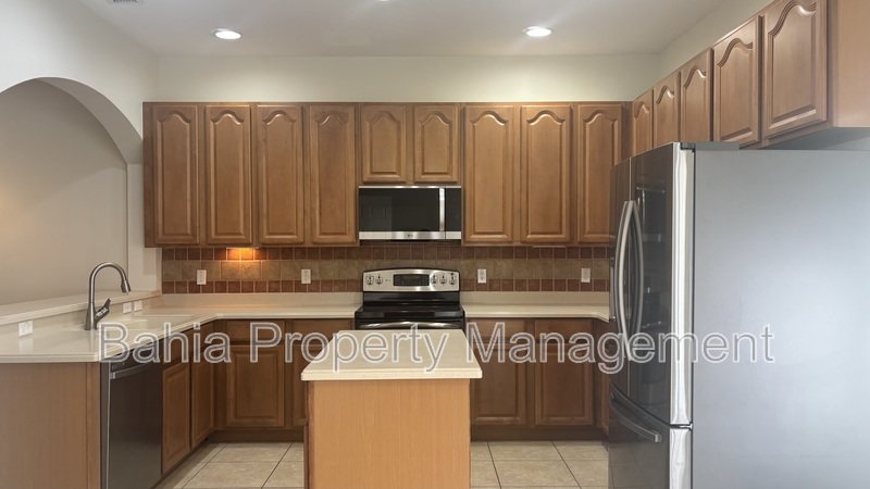 The kitchen offers abundant cabinet and counter space, perfect for meal prep, hosting, or quick mornings on the go. Step outside to a private courtyard, ideal for weekend gatherings, and enjoy the added convenience of a two-car garage.
