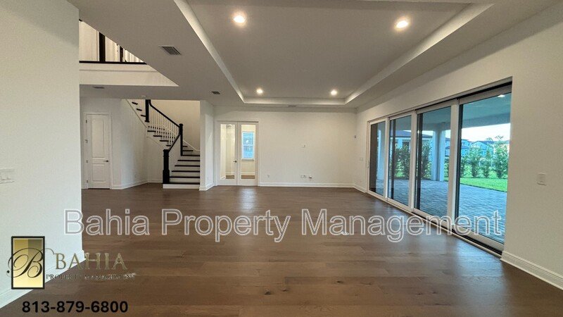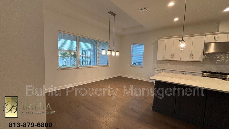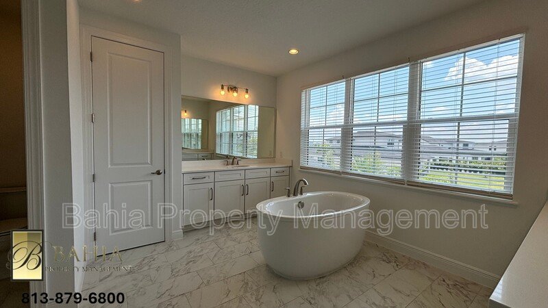 AMAZING, move in ready Lake Nona house located in the charming and luxury community of LAUREL POINTE. This single-family home with 5 bedrooms plus den, 4.5 bathrooms, and 3 car garage features, a modern kitchen with a lot of cabinet space, modern lighting fixtures throughout, granite counters, stainless steel appliances, luxurious wood flooring throughout the first floor and more. Two story entry that open up to the social area. A spacious living room and dining room combo, great for entertaining. A massive lanai and an open patio with a relaxing and wonderful view of a pond and Lane Nona sunsets. A guest bedroom with bathroom on the first floor. The master bedroom with large ensuite is on the second floor comes complete with trayed ceilings, large walk-in closets, balcony and a master bathroom with a FRAMELESS SHOWER. Along with three other bedrooms, two full bathrooms, laundry room and spacious loft. Entire access to all Laureate Park amenities including Aquatic Center that offer multiple pool including lap pool, beach volleyball, basketball and more. Across the street you will have access to LP Fit (Fitness Center), also available Tennis, Picktball court, playground, Biking and walking trails throughout and much more. Immerse yourself in all the Lake Nona lifestyle with nearby shops and remarkable restaurants. Top-rated Orange County schools, Basic cable TV + internet included in rent fee. The washer, dryer and refrigerator will be installed in the next few days. WE SHOW PROPERTIES 7 DAYS A WEEK! An administrative fee of $75.00 will be charged at the time of move-in.
